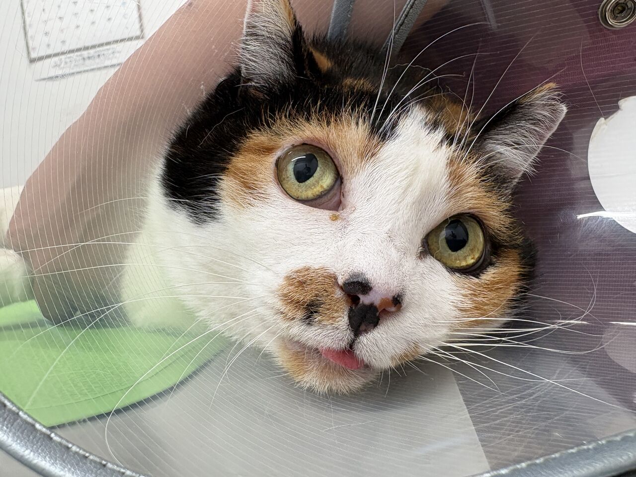 来た当初は三食がっつりカリカリを食べていたのに1年2年3年と過ぎるうちに危機感を感じなくてもご飯はもらえると思ったのかな。それにしても食べなさすぎなので芦屋動物愛護協会に連絡して病院へ連れて行こうということに…。